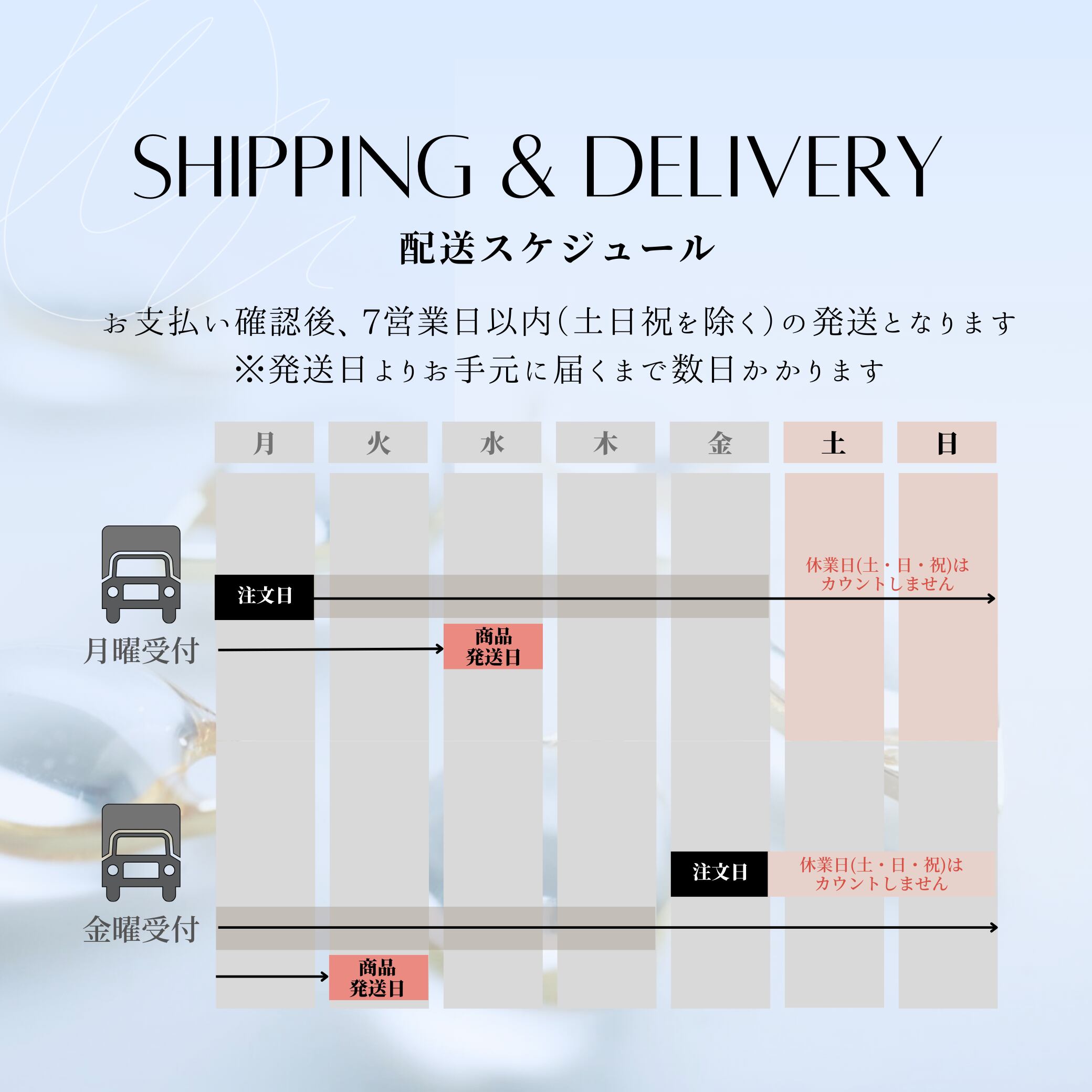 受注制作のため、発送まで7営業日(土日除く)いただいております。